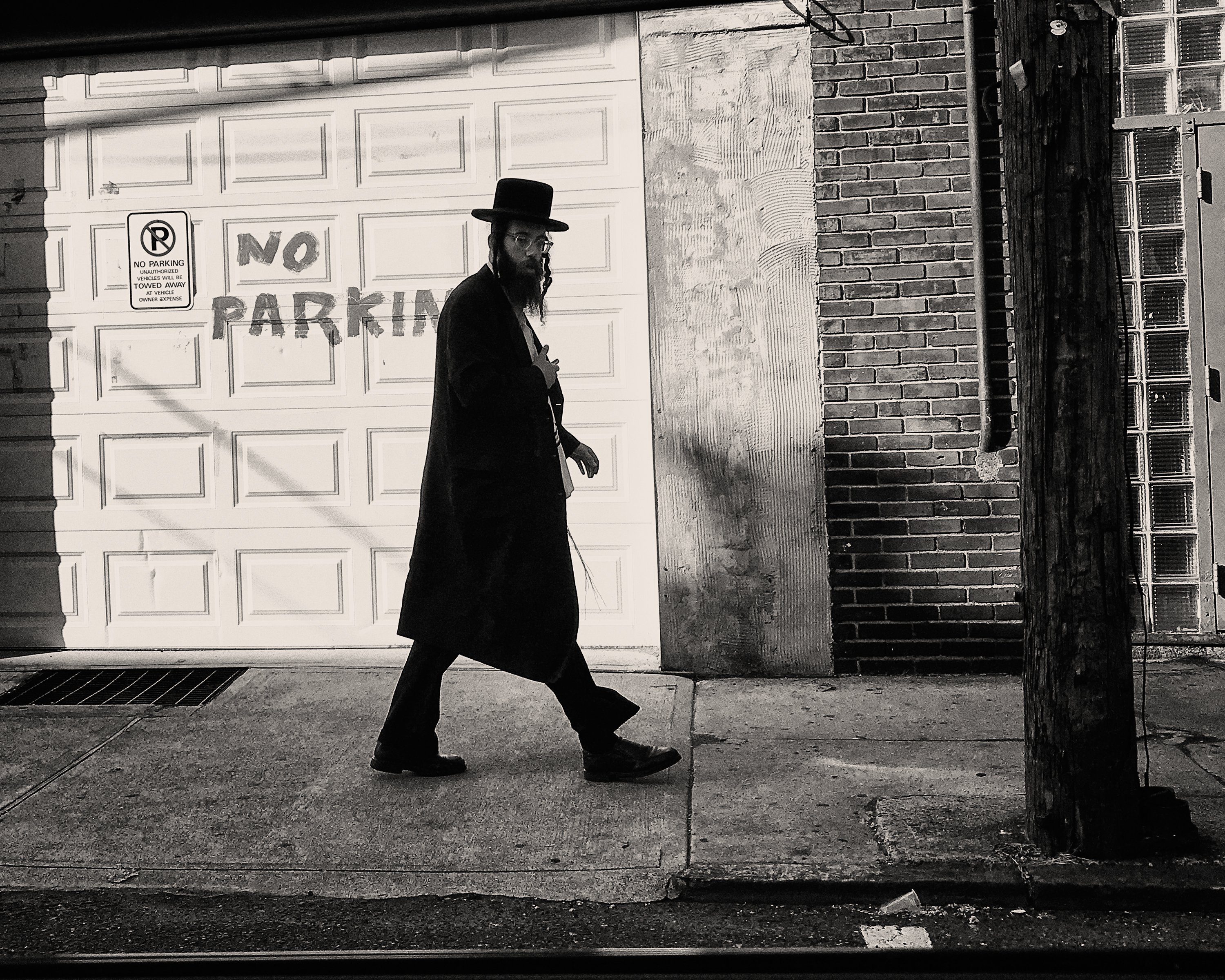 De manera que Nueva York y Nueva Jersey son aquí puntos de convergencia, cruce de caminos, sobre todo, culturales, religiosos y/o políticos. Hay, por supuesto, una cuestión de escala existencial que en cierto modo se replica en la estructura de la serie: el fotógrafo se antoja a todas luces un migrante individual, alguien que en todo caso habita un exilio biográfico, mientras que los judíos retratados aquí son comunidad y, por tanto, representan un exilio milenario e irrenunciable.