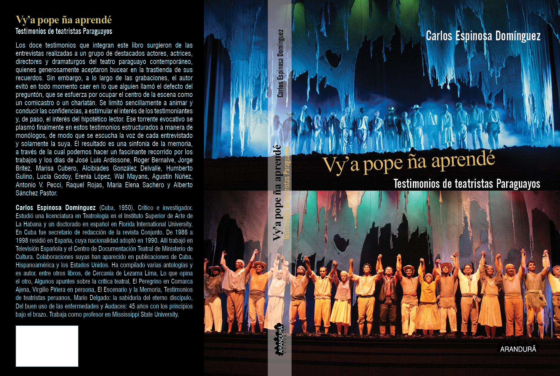 Aquí los dejo con la nota introductoria al último libro de Carlos Espinosa, Vy´a popen ña aprendé. Testimonios de teatristas paraguayos. Un libro de investigación para todos los amantes del mondo-teatro y un libro especial para todos los especialistas y seguidores de la escena latinoamericana. Disfruten 😉